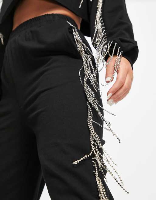 Black outlet diamante joggers